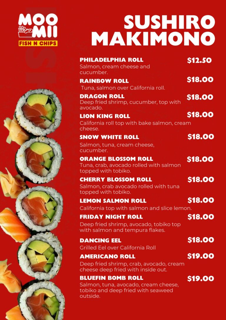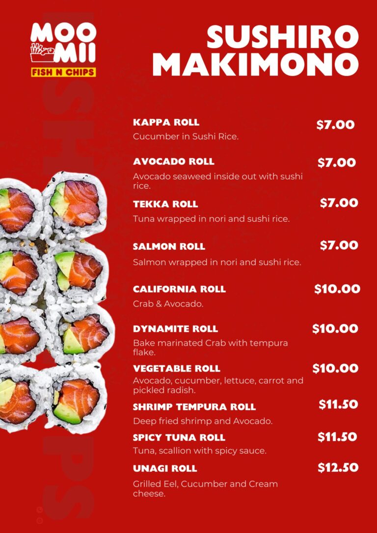 we go beyond the ordinary to offer you a sea of choices! Our menu is packed with your favourite fishes, Pollock fish and Catfish, each perfectly fried to golden perfection pair it with golden crispy chips. But that's not all—we also serve up irresistible popcorn shrimp, crispy chicken strips, and indulgent poutines, giving you a taste of comfort in every bite. You can also add our Makimono as a side order. Call us or order with our delivery partner apps.